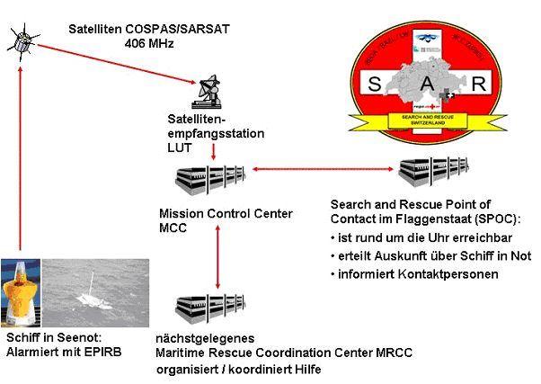 Weiter unten wird der Ablauf einer Alarmierung durch ein 406 MHZ EPIRB mit schweizerischer Kennung beschrieben.