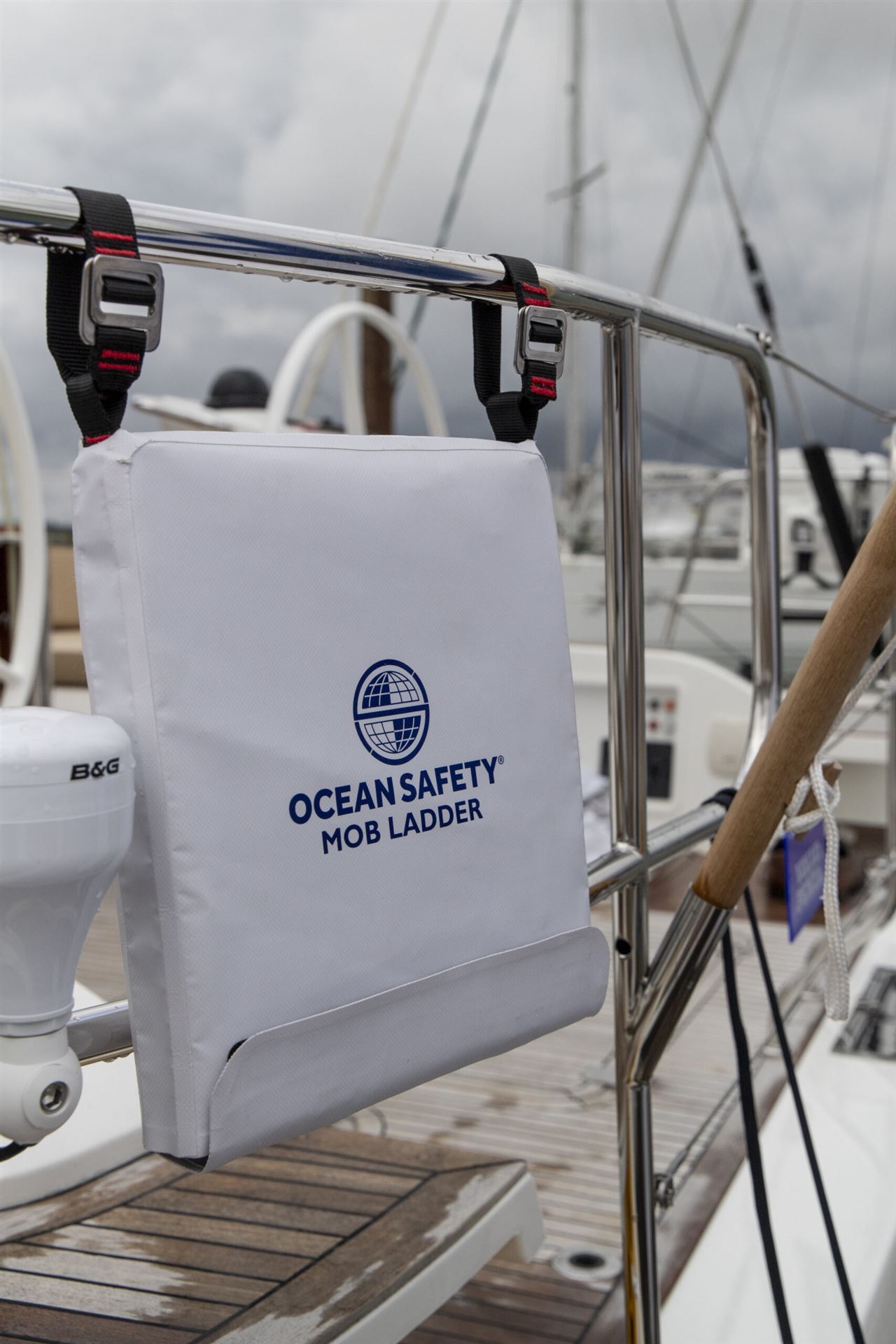 Rettungsleiter, erhöht die Sicherheit an Bord. Schnelle Befestigung der Tasche an der Reling. Einfaches Herausziehen der 3m langen Leiter aus der Tasche. Maximale Belastbarkeit: 375kg. Befestigung der Tasche mittels 2 Gurtbändern und Metallverschlüssen an der Reling. Bei Bedarf wird die Leider durch einen Handgriff aus der mit Klettband verschlossenen Tasche einfach herausgezogen. Erfüllt die Standards gem. ISO 15085.