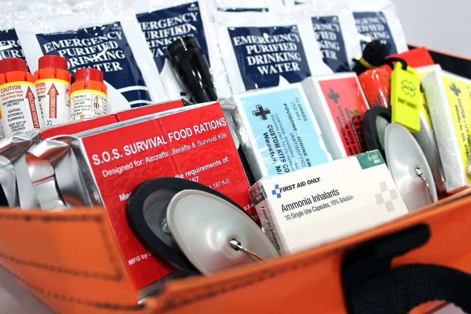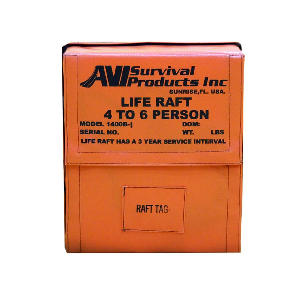 Basis-Insel mit Dach (SPI 1400B-3 / 1500B-2) für 4 - 6 Personen: CO2-Flasche mit Auslösevorrichtung, Befestigungsleine, Schöpfgefäß, Handpumpe, Schleppanker, Dach und Mast, zusätzlich mit FAR 91 Überlebenspack