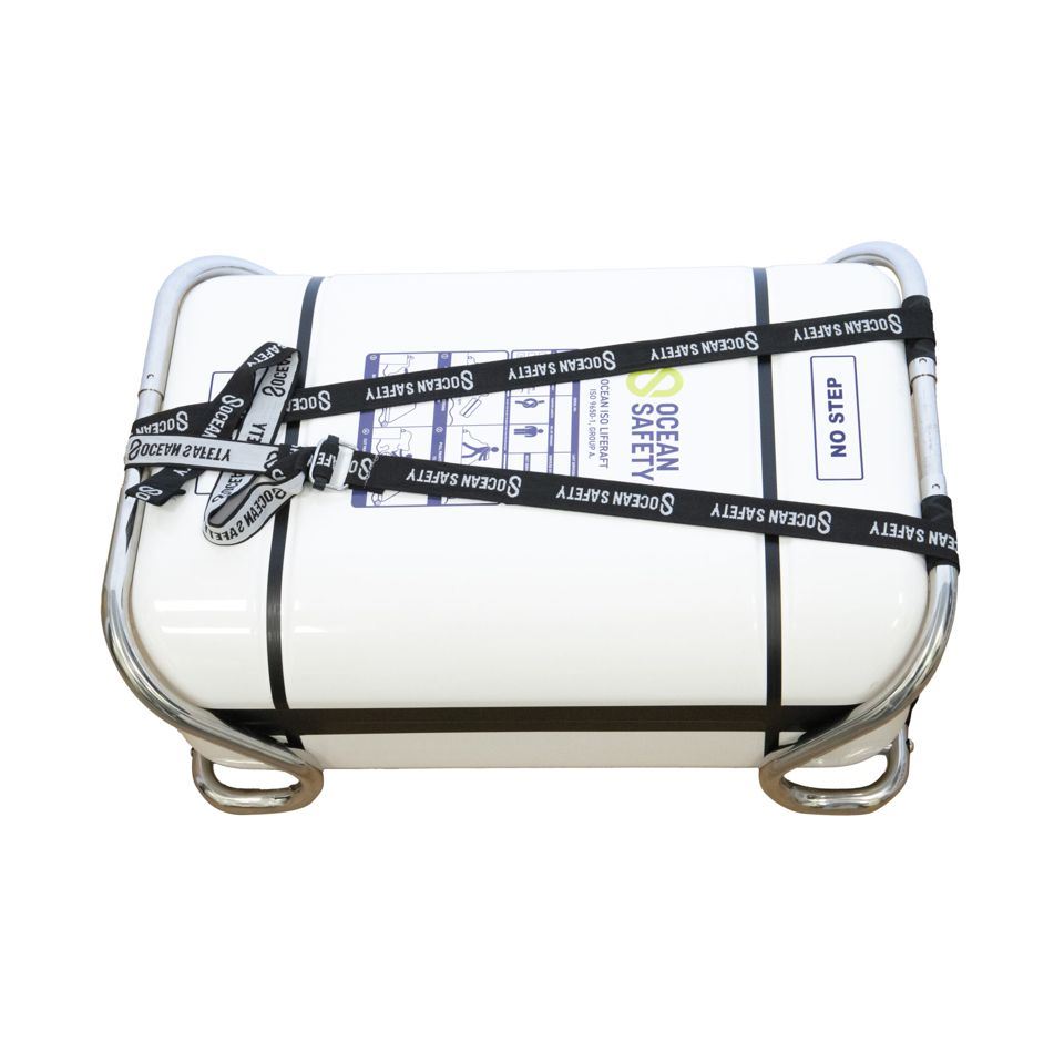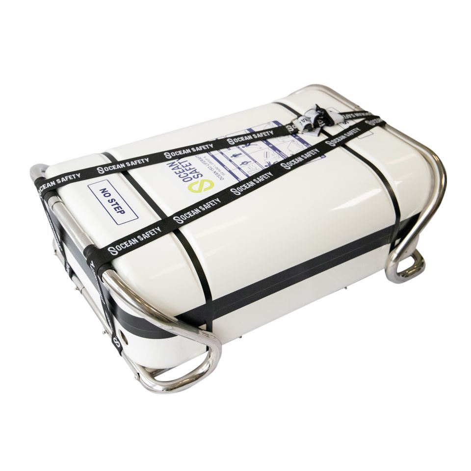 Die universelle Rettungsfloßhalterung von Ocean Safety wurde so konzipiert, dass sie entweder auf dem Deck oder an der Reling montiert werden kann.