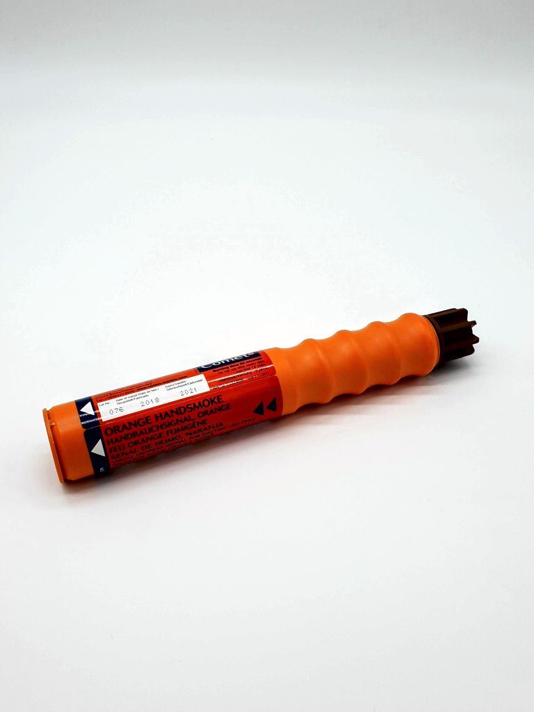 Universelles, kompaktes Tagessignal, stößt 60 sek intensiv orangen Rauch aus und dient zur Positionsmarkierung und Anzeige der Windrichtung.