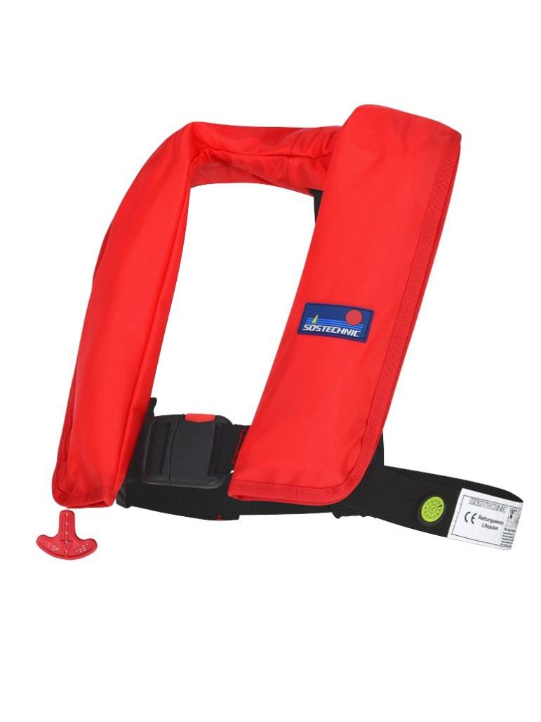Vollautomatisch aufblasbare Rettungsweste mit 165 N Auftrieb.