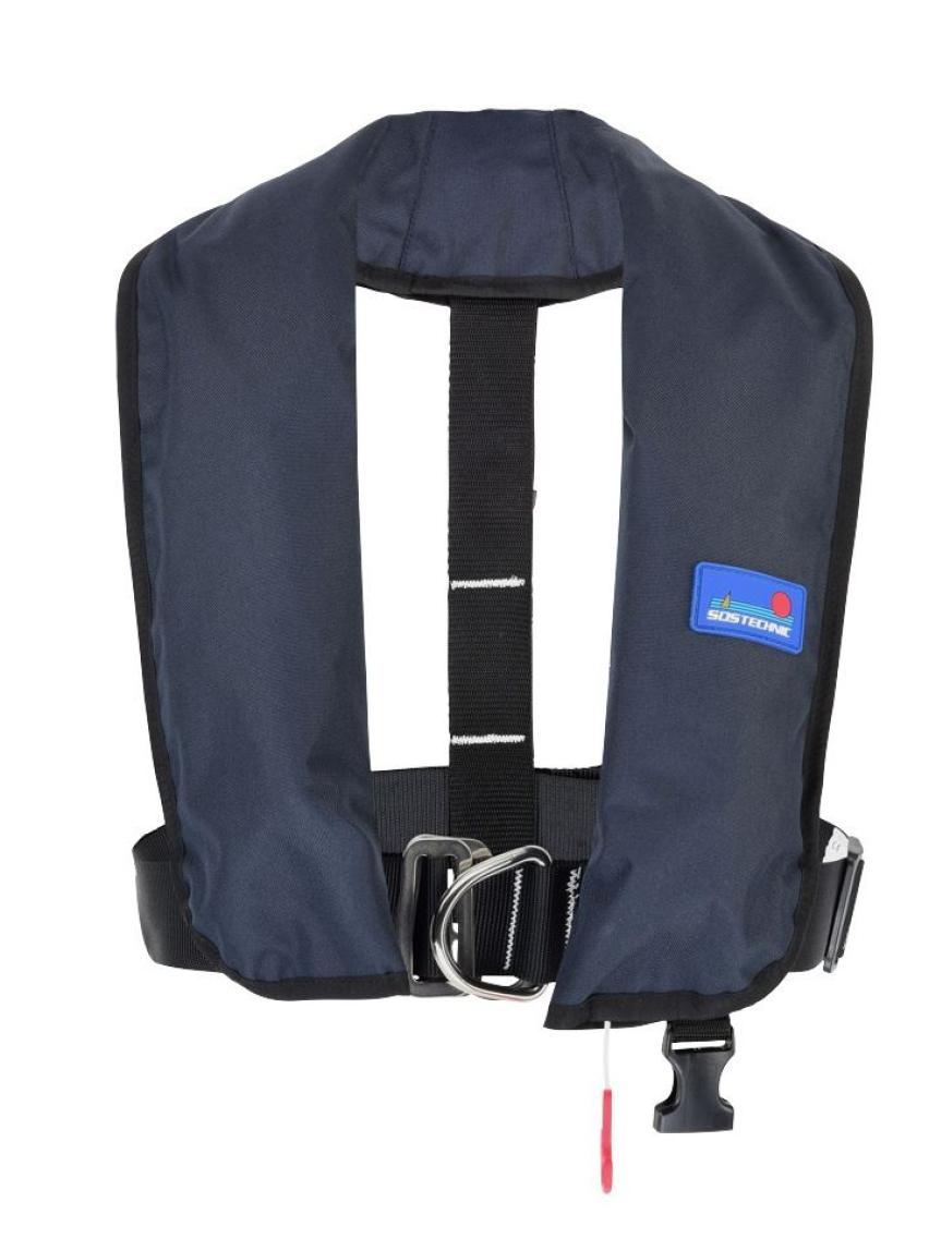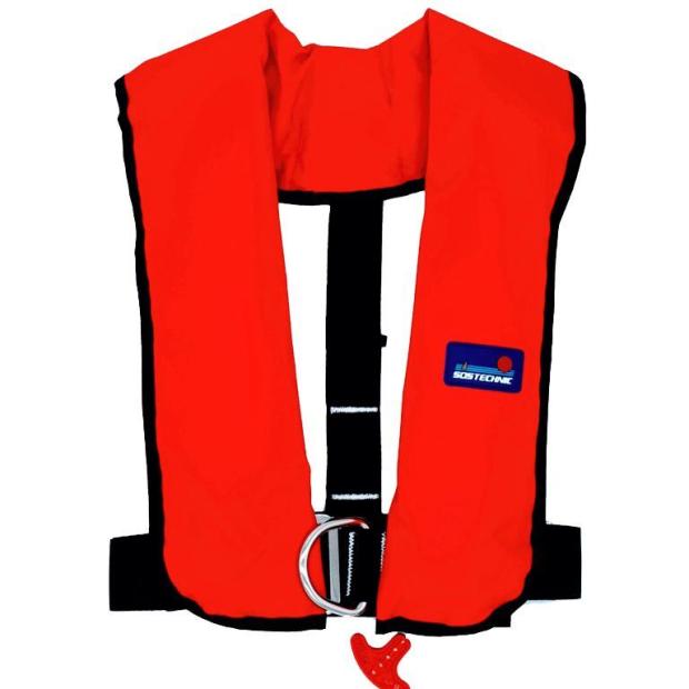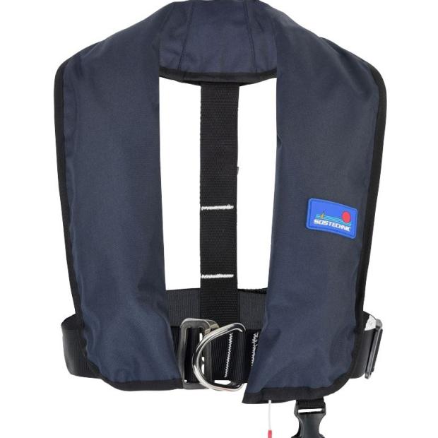 Vollautomatisch aufblasbare Rettungsweste mit 165 N Auftrieb.