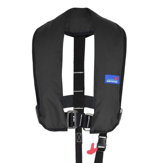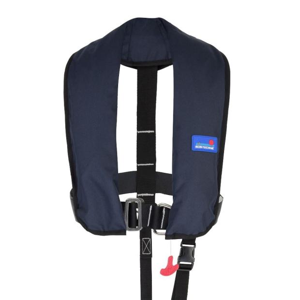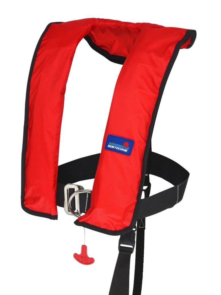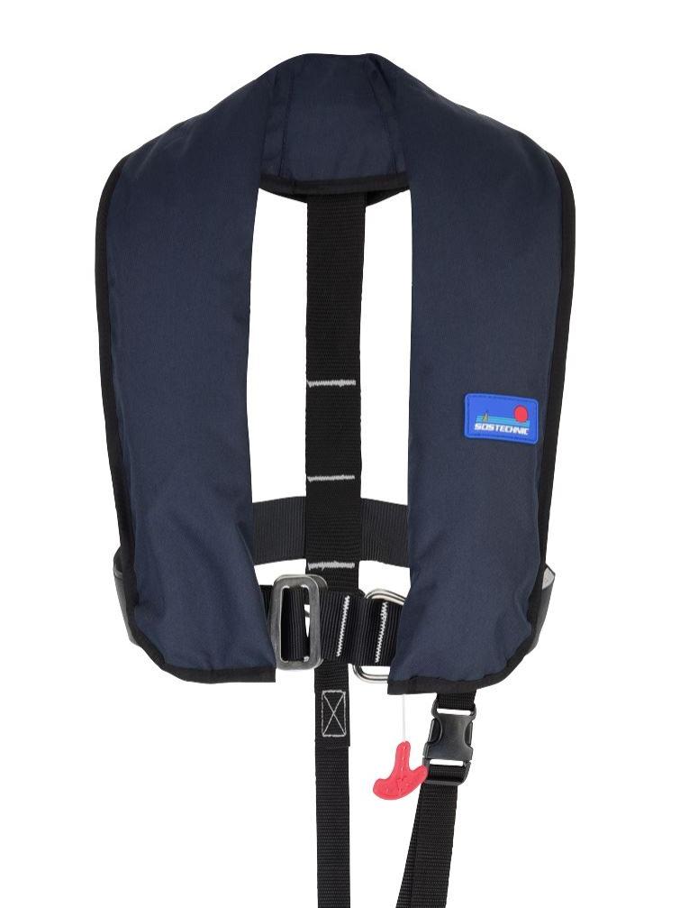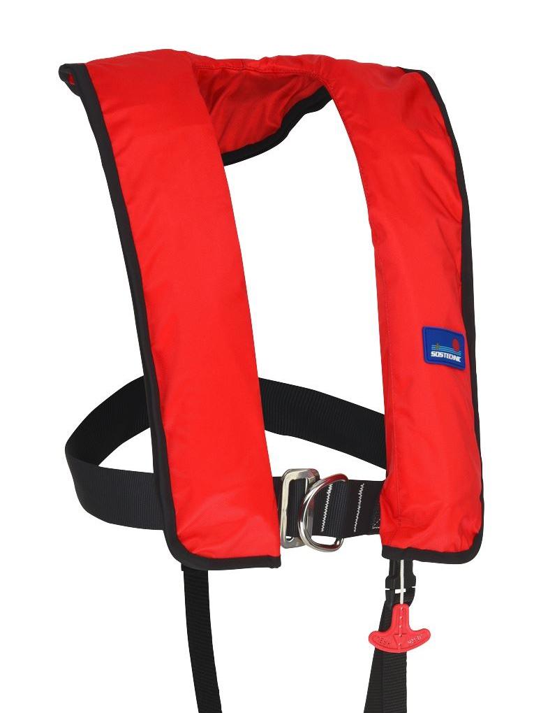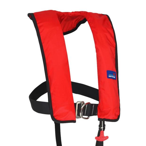 Vollautomatisch aufblasbare Rettungsweste mit 165 N Auftrieb.